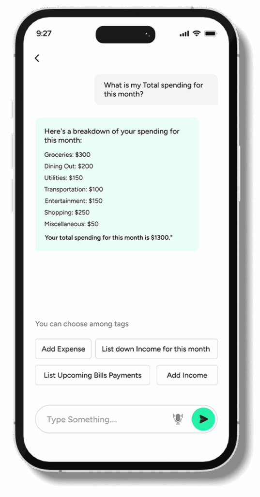 A voice-enabled assistant leveraged natural language understanding and intent recognition, allowing users to issue commands like “Add a coffee expense” or “Check my balance,” which the AI mapped to financial workflows. On iOS, SiriKit integration enabled queries such as “What were my expenses last month?” with structured results delivered instantly, embedding the app into users’ daily interactions.