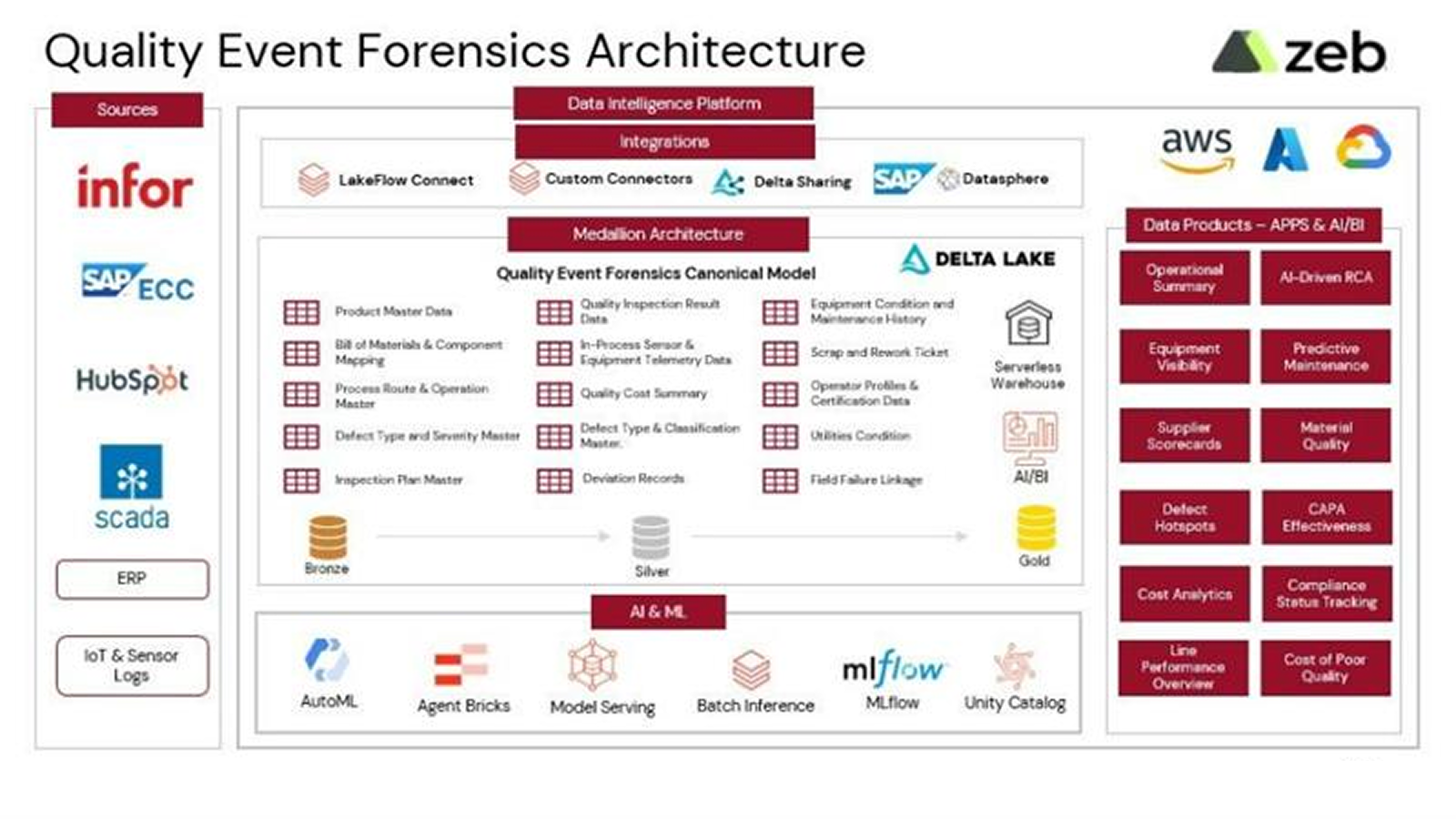Our Databricks Quality Event Forensics Accelerator provides manufacturers with a governed, scalable, and intelligent foundation for quality analytics and proactive defect prevention. Whether your organization is modernizing quality operations or strengthening compliance and traceability, zeb can help you move forward with clarity and speed.