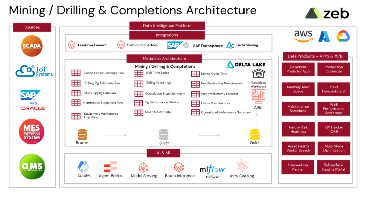 To address this challenge, zeb designed the Drilling & Mining Optimization App on Databricks; a unified intelligence layer that connects drilling and mining workflows, enabling continuous operational improvement.